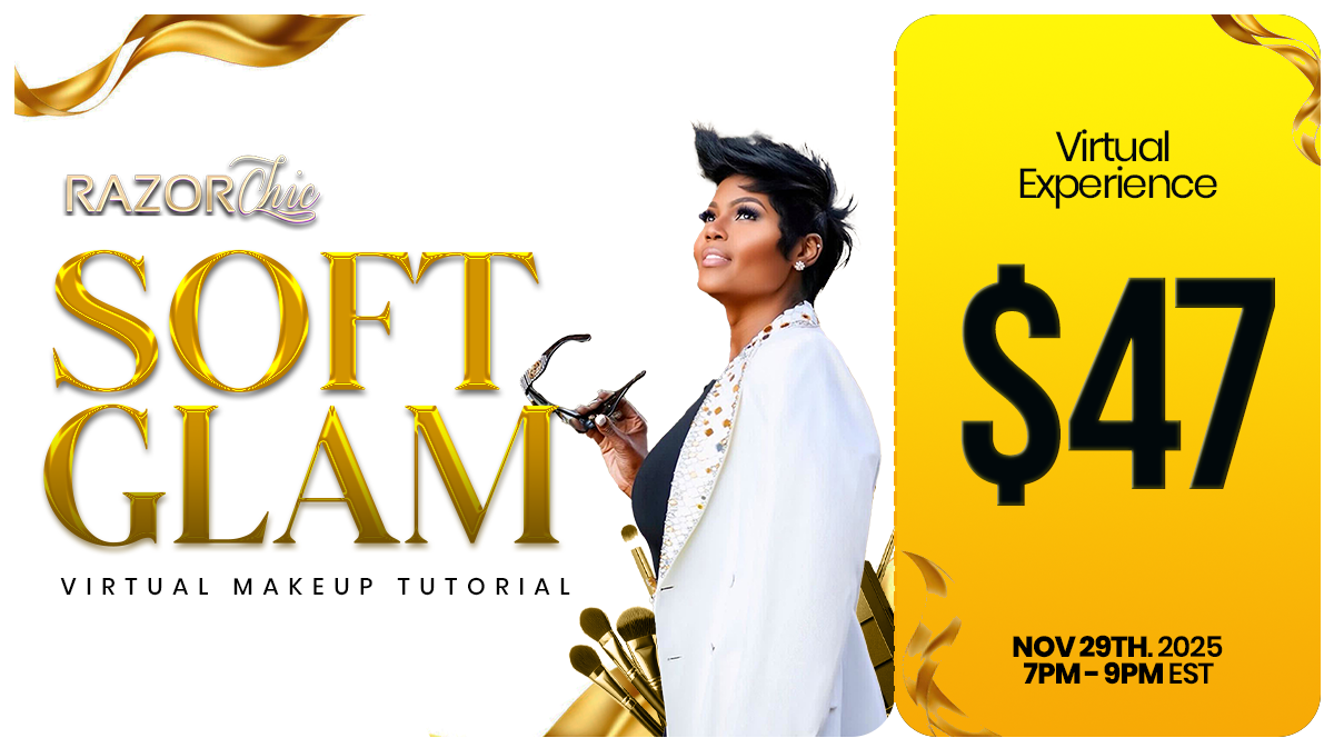 This class is perfect for anyone who wants to look polished, glowing, and confident — whether for work, a night out, or social media. With her 30+ years of beauty expertise, Razor Chic will share insider secrets, pro tips, and personalized guidance to help you achieve a smooth, glowing, red-carpet-ready finish.